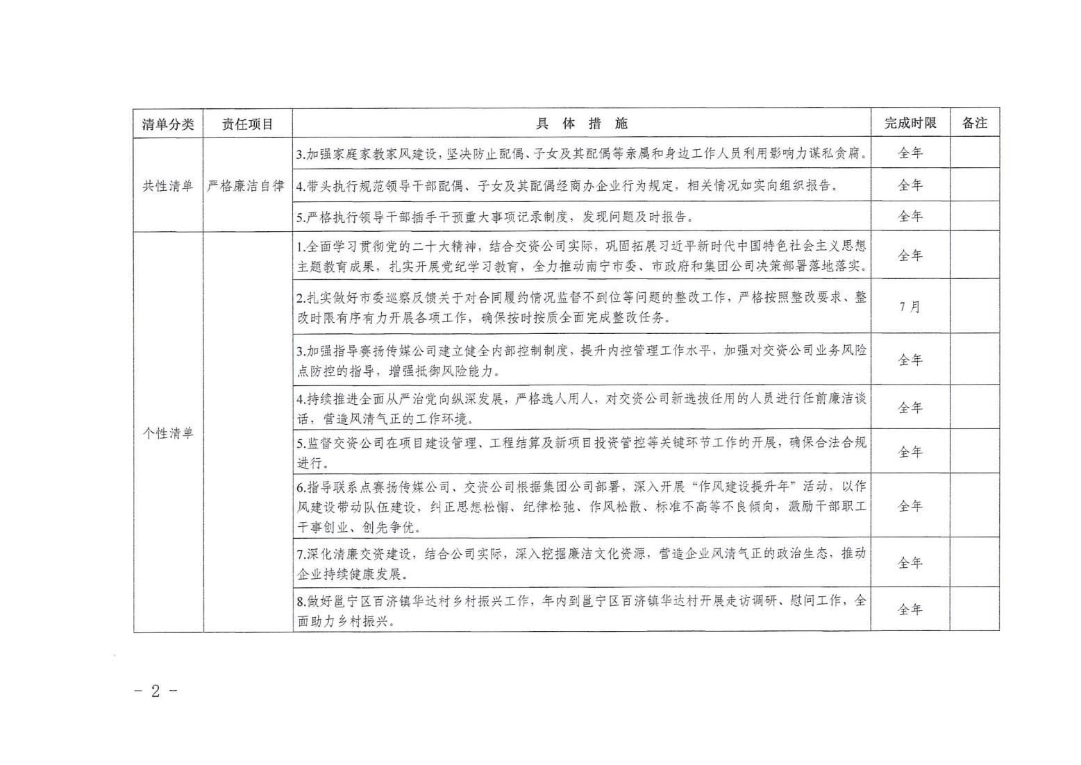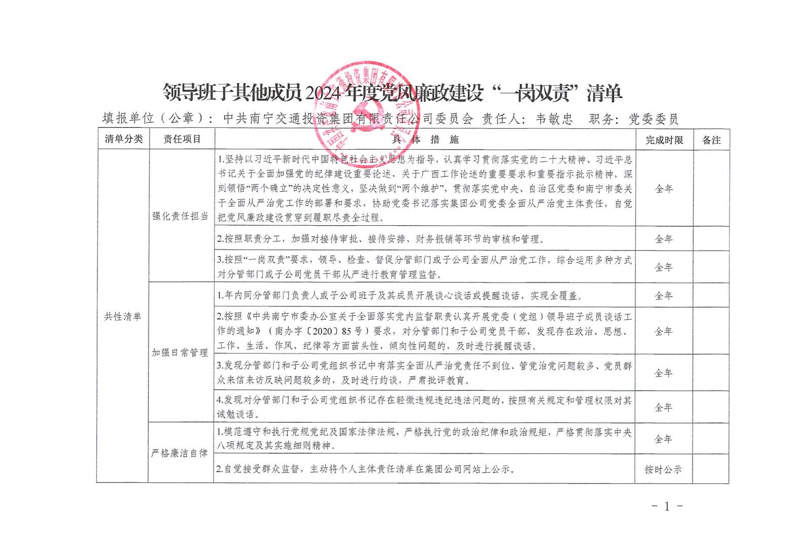 領(lǐng)導班子其他成員2024年度黨風廉政建設(shè)“一崗雙責”清單(七)