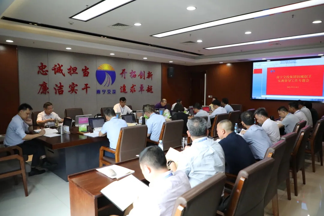 為進(jìn)一步推動(dòng)創(chuàng)城創(chuàng)衛(wèi)實(shí)地測(cè)評(píng)各項(xiàng)工作的有效落實(shí),5月10日,南寧交投集團(tuán)召開(kāi)創(chuàng)城創(chuàng)衛(wèi)工作推進(jìn)會(huì),對(duì)相關(guān)工作進(jìn)行部署。集團(tuán)公司領(lǐng)導(dǎo)楊漣、張玉波、謝萬(wàn)升、林海松、羅維松、黃海燕、周宏、秦勝友,集團(tuán)公司總法律顧問(wèn)、董事長(zhǎng)助理、總經(jīng)理助理,以及各子公司、各部門(mén)負(fù)責(zé)人參加會(huì)議。
