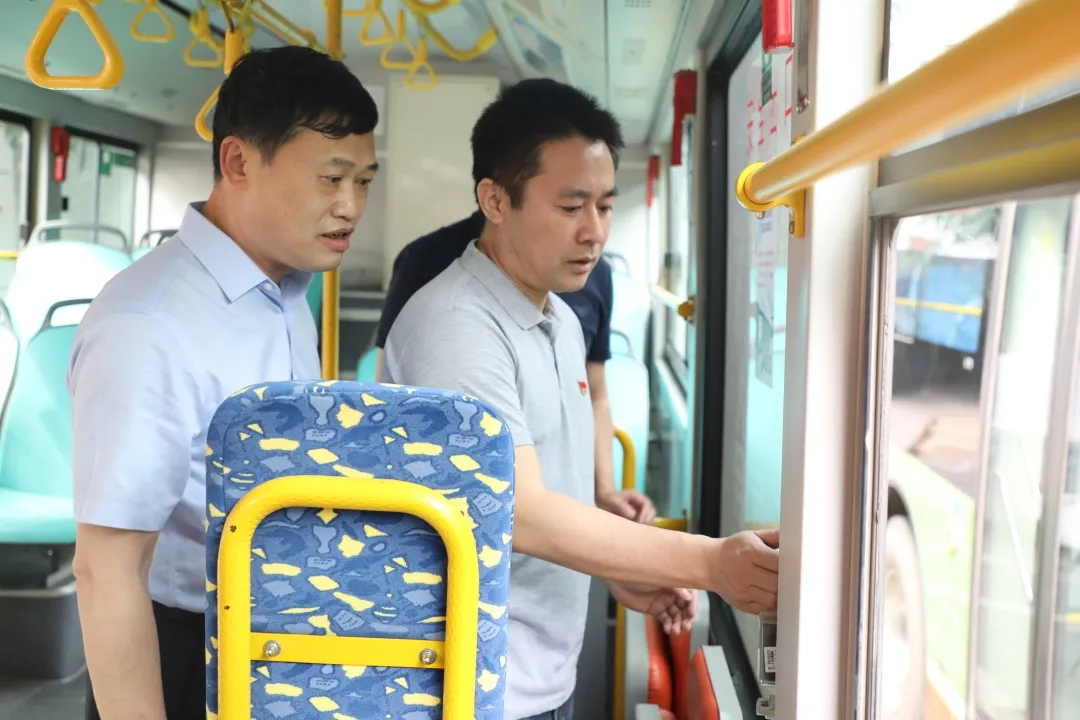 在南寧公交集團,江國波副書記一行對公交車及場站的安全生產(chǎn)進行了實地檢查,詢問并詳細了解了防火防災(zāi)措施情況。