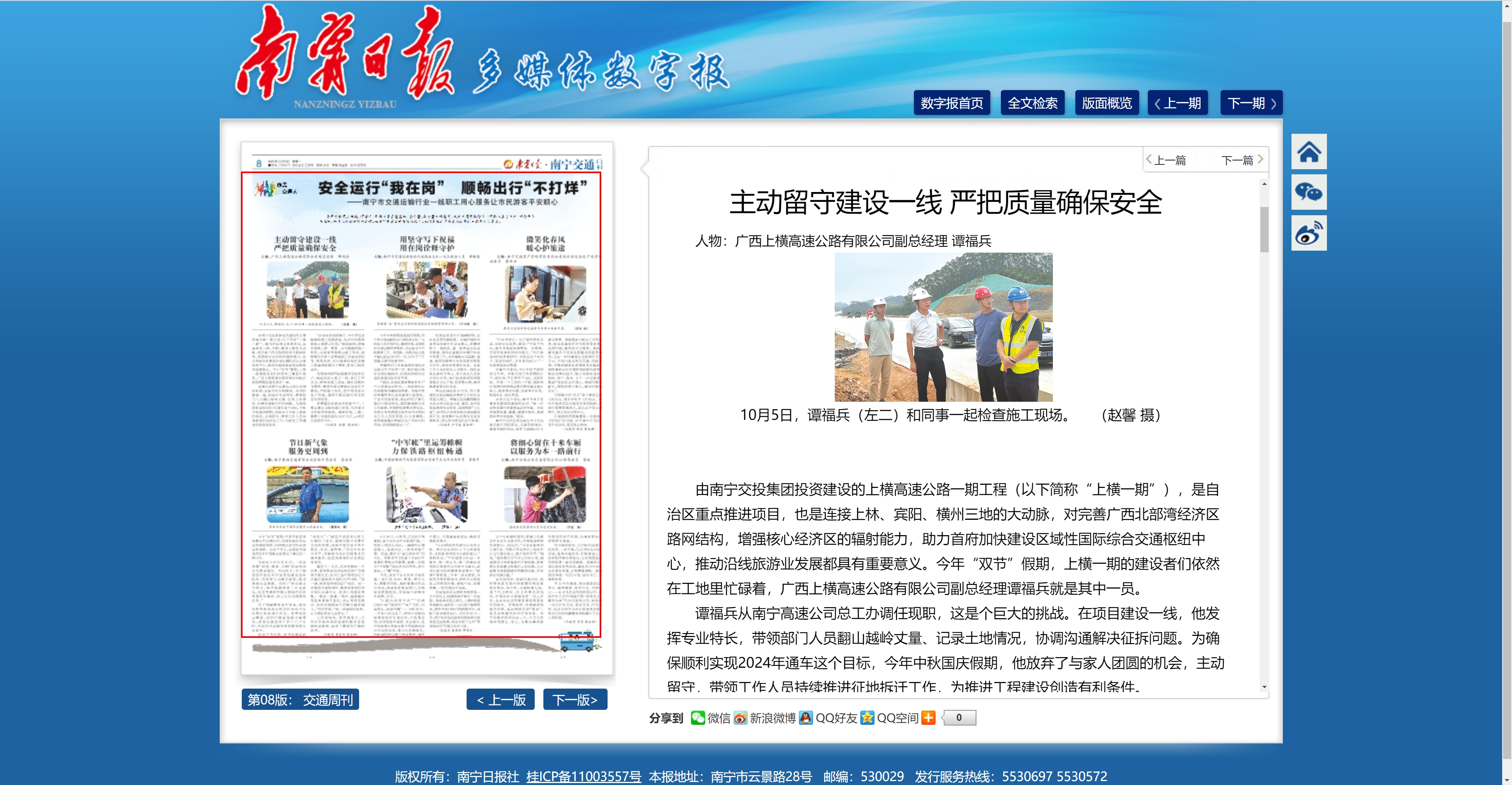 主動留守建設一線 嚴把質量確保安全-廣西上橫高速公路有限公司副總經理 譚福兵