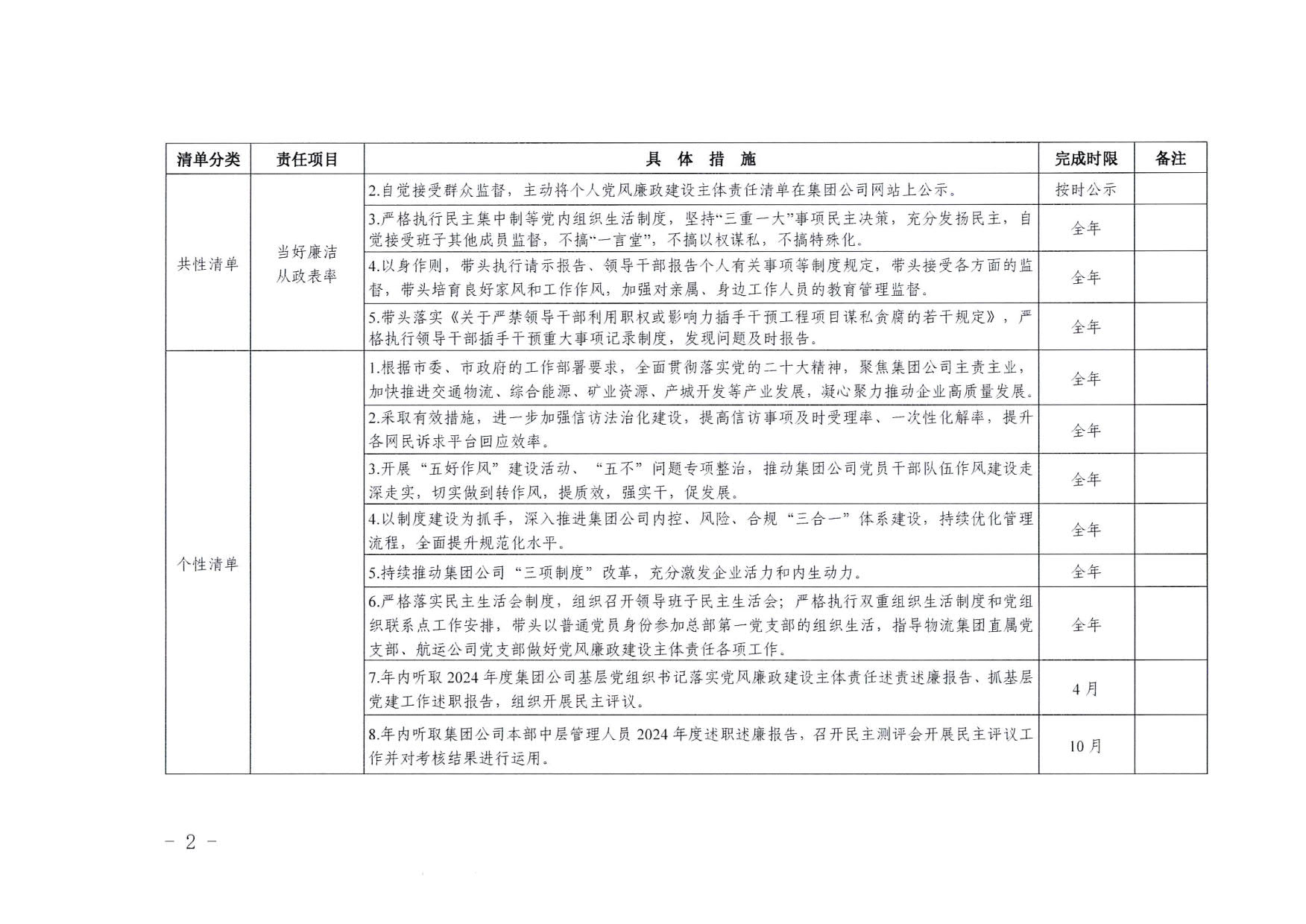南寧交投集團領(lǐng)導(dǎo)班子其他成員2025年度黨風(fēng)廉政建設(shè)“一崗雙責(zé)”清單(一)