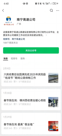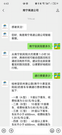 司乘只需關(guān)注“南寧高速公司”微信公眾號(hào),點(diǎn)擊發(fā)消息即可輕松開(kāi)啟在線咨詢之旅。這種將AI智能客服融入微信公眾號(hào)的方式,充分考慮了司乘人員的使用習(xí)慣,進(jìn)一步拉近了企業(yè)與司乘之間的距離。
