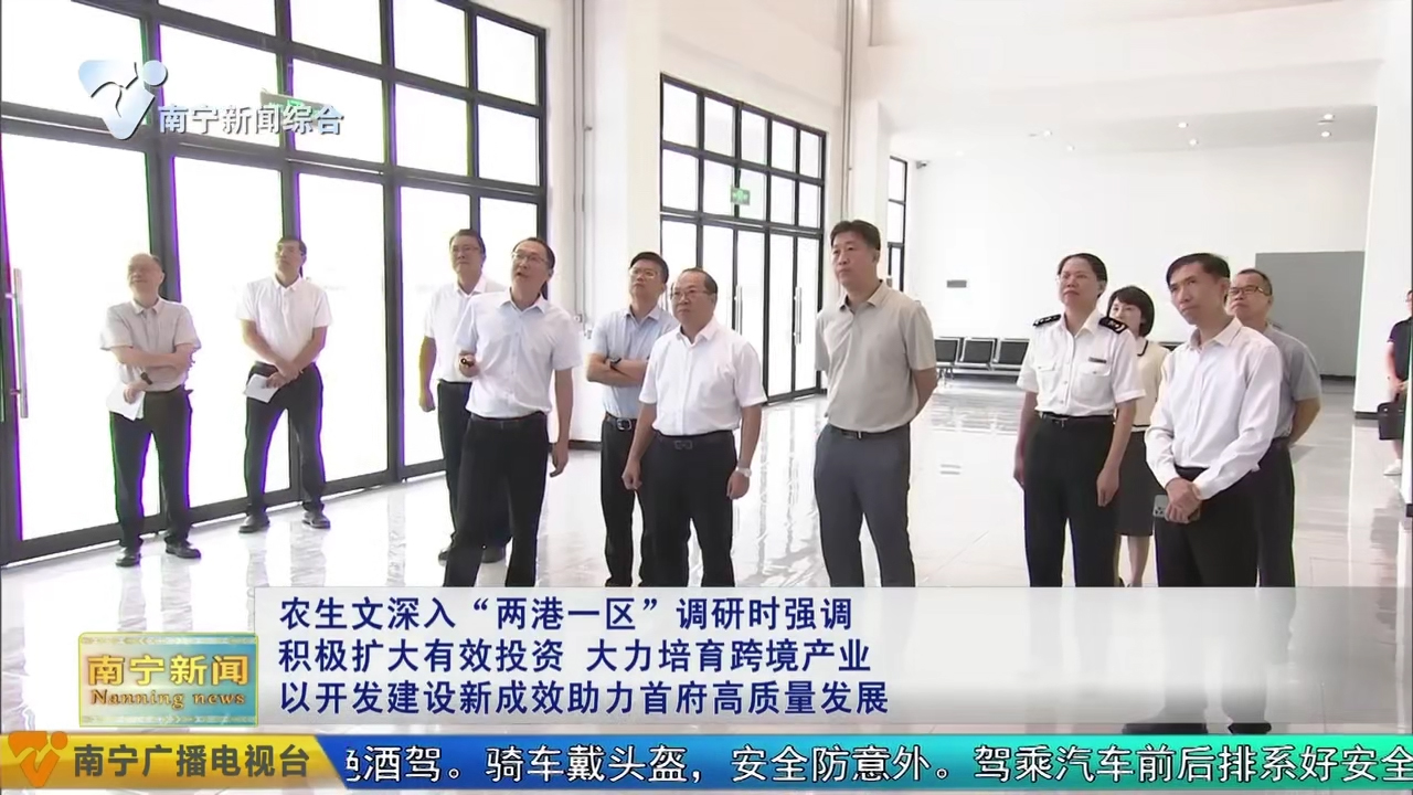 7月8日,自治區(qū)黨委常委、市委書記農(nóng)生文到“兩港一區(qū)”調(diào)研開發(fā)建設(shè)情況,強(qiáng)調(diào)要深入貫徹落實(shí)習(xí)近平總書記關(guān)于對(duì)外開放的重要論述和關(guān)于廣西工作論述的重要要求,進(jìn)一步樹牢開放發(fā)展理念,堅(jiān)持貿(mào)易先行、貿(mào)工結(jié)合、以貿(mào)促工,充分發(fā)揮空港、鐵路港、公路港協(xié)同聯(lián)動(dòng)和綜合保稅區(qū)政策優(yōu)勢(shì),積極擴(kuò)大有效投資,暢通跨境物流通道,大力培育跨境產(chǎn)業(yè),不斷開創(chuàng)“兩港一區(qū)”開發(fā)建設(shè)新局面,為加快建設(shè)面向東盟開放合作的國(guó)際化大都市注入強(qiáng)勁動(dòng)力。
